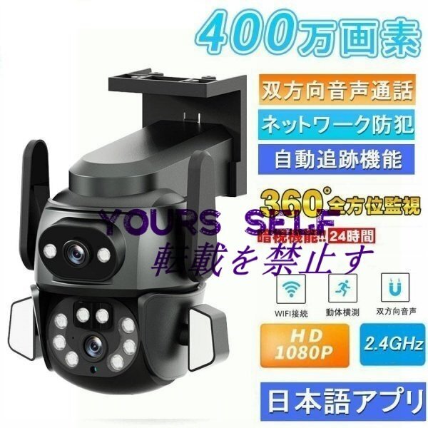 - 防犯カメラ 屋外 家庭用 監視カメラ ワイヤレス デュアルレンズ 400万画素 無線 wifi 屋外セキュリティカメラ 防水 自動追尾 双方向通話