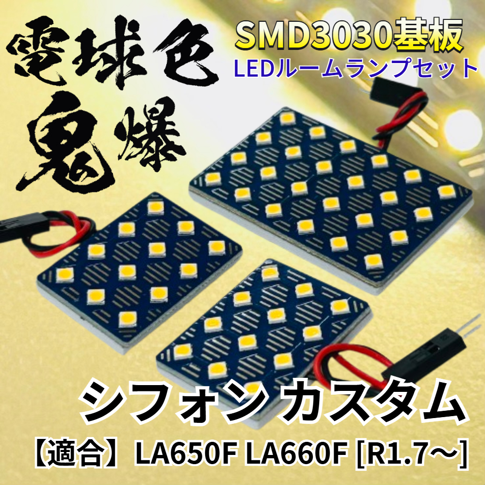 > 【電球色】シフォンカスタム LA650F LA660F 暖色 鬼爆基板 3030SMD LED ルームランプ セット 車内灯 室内灯 パーツ アクセサリ スバル