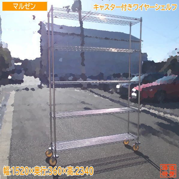 - マルゼン ワイヤーシェルフ 1520×360×2340 収納棚 中古厨房/24M0226Z