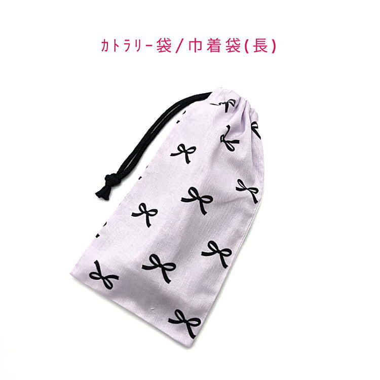 > カトラリー袋・巾着袋 長方形【クラシックリボン柄 パープル】カトラリーケース 箸袋 はし袋 コップ袋 ポーチ 収納袋 かわいい りぼん