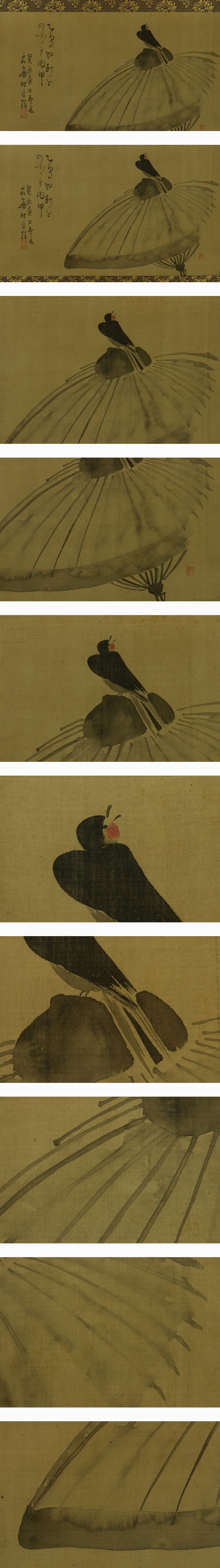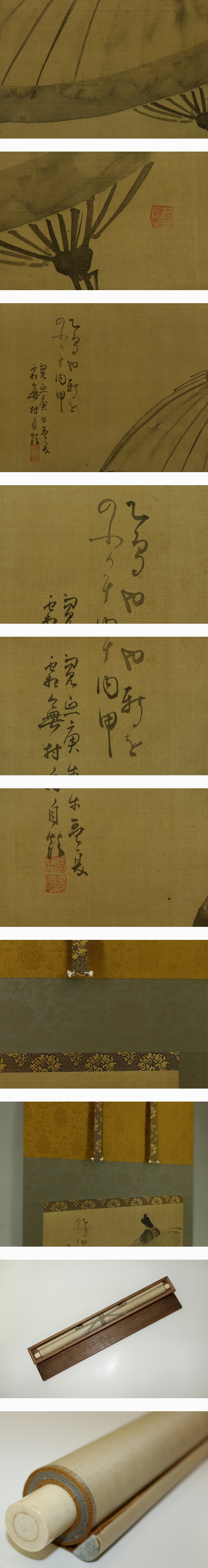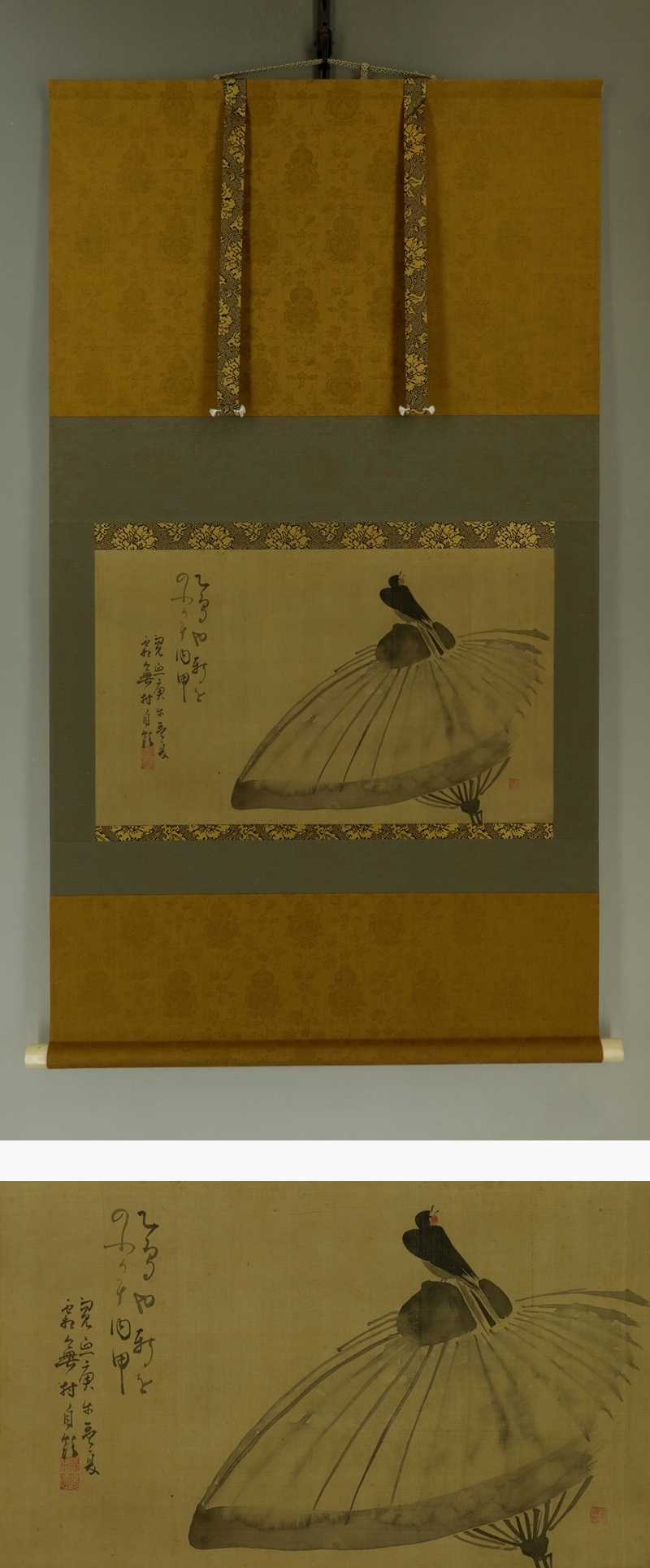 - 【模写】与謝蕪村【傘に小禽】◆絹本◆合箱◆掛軸 s02003