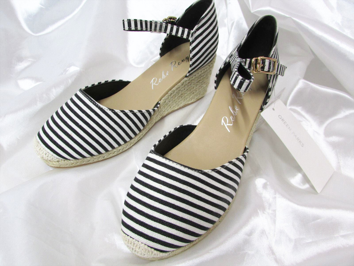 - Green Parks ストラップ セパレート ウェッジソール ボーダー サンダル Lサイズ green-72