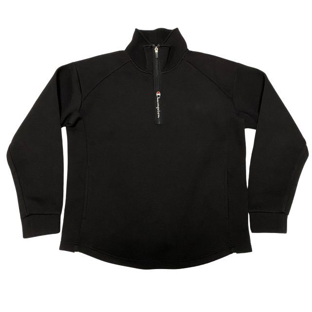- 美品 チャンピオン ハーフジップ ボンディングスウェット トレーナー champion ブラック ストレッチ ジッパーロゴ 黒 雅瀬1186