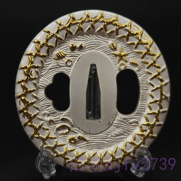 - SY109 日本刀装具 刀鍔 貝図 合金製 現代品 つば ツバ 刀剣美術 重さ約138G 厚さ約6mm