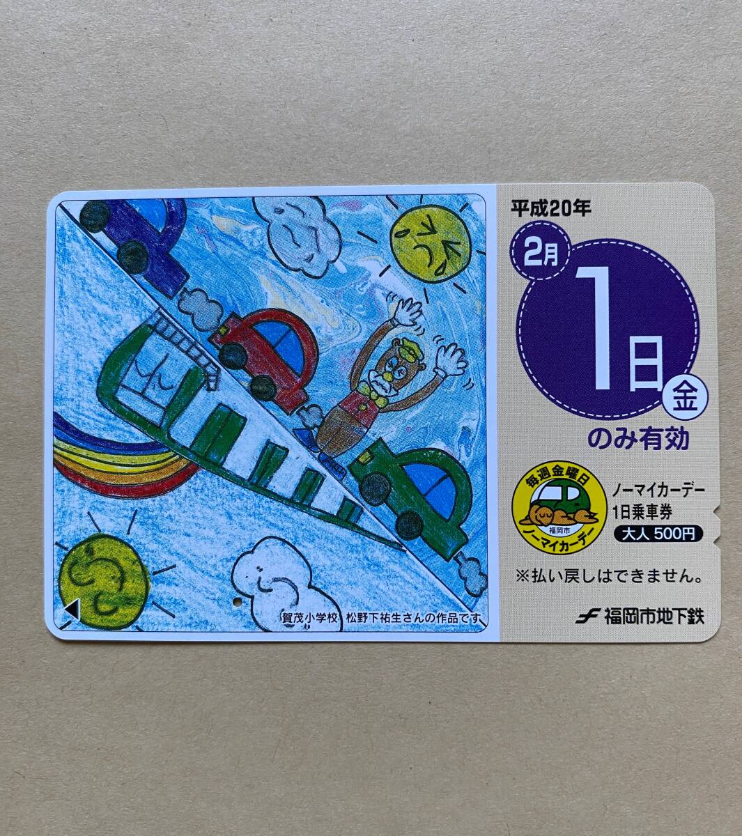 - 【使用済】 1日乗車券 福岡市地下鉄 平成20年2月1日のみ有効 ノーマイカーデー