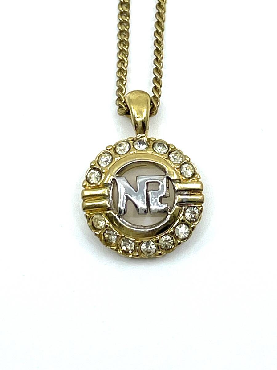 > NINA RICCI ニナリッチ ネックレス ロゴ ラインストーン 石 ゴールド×シルバー コンビ サークル ラウンド ラグジュアリー エレガント