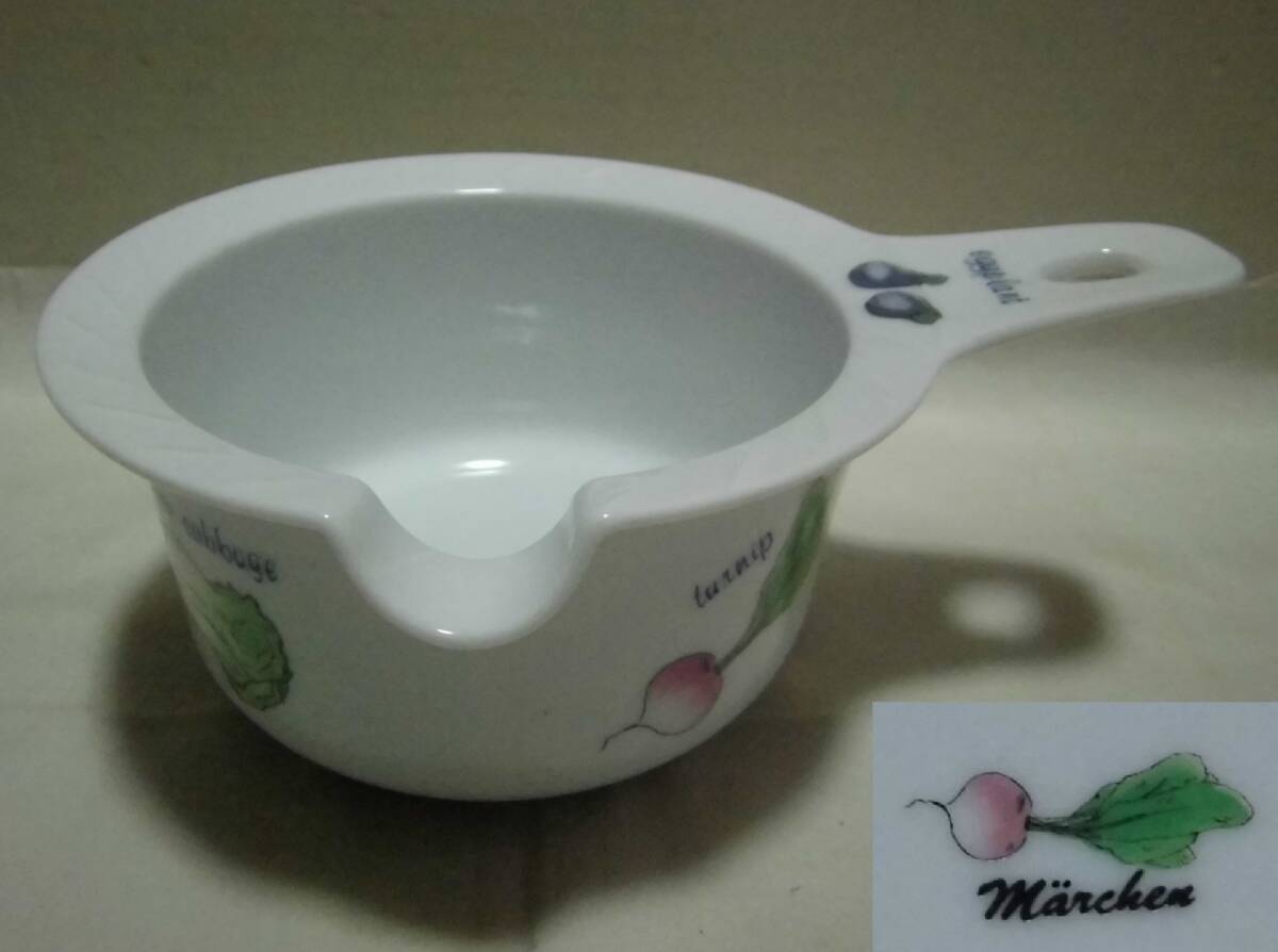 - 片口 取っ手付 中鉢 深鉢 白磁 野菜柄 つゆ入れ 注ぎ口 陶器 工芸品 レトロ