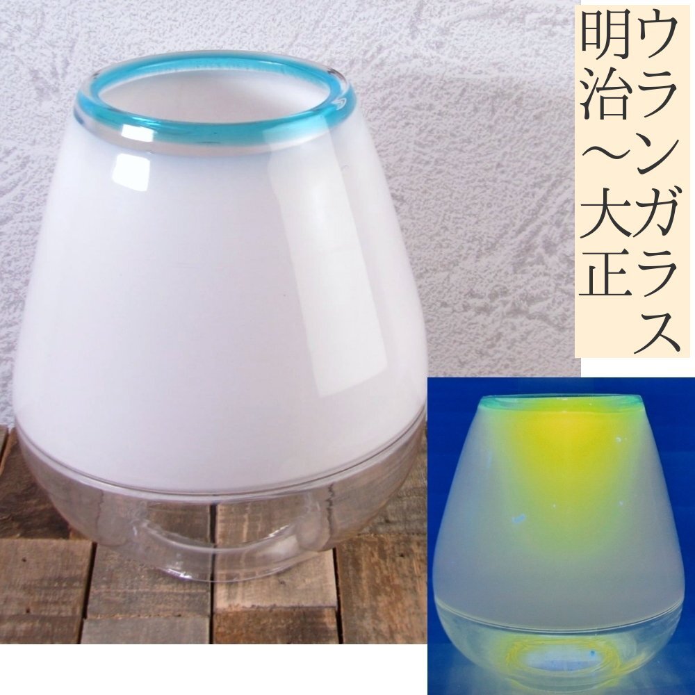 - 時代 ウランガラス シェード 電笠 水色に乳白 高さ:16.2cm 明治~大正/25a047