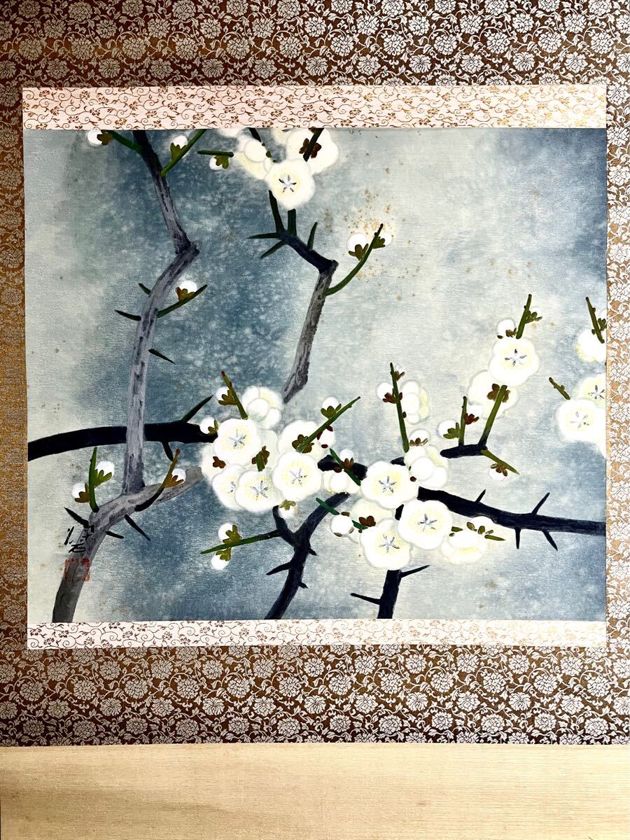 - 【模写】【S8】在銘 深石「白梅図」紙本 合箱 大幅 春景 花鳥図 早春図 日本画 絵画 掛軸