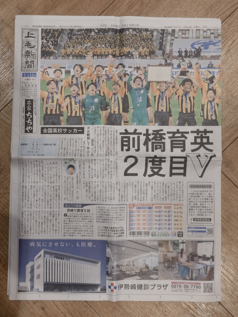 - 上毛新聞 前橋育英 優勝 高校サッカー グッズ 国立競技場 群馬県 2025年1月14日