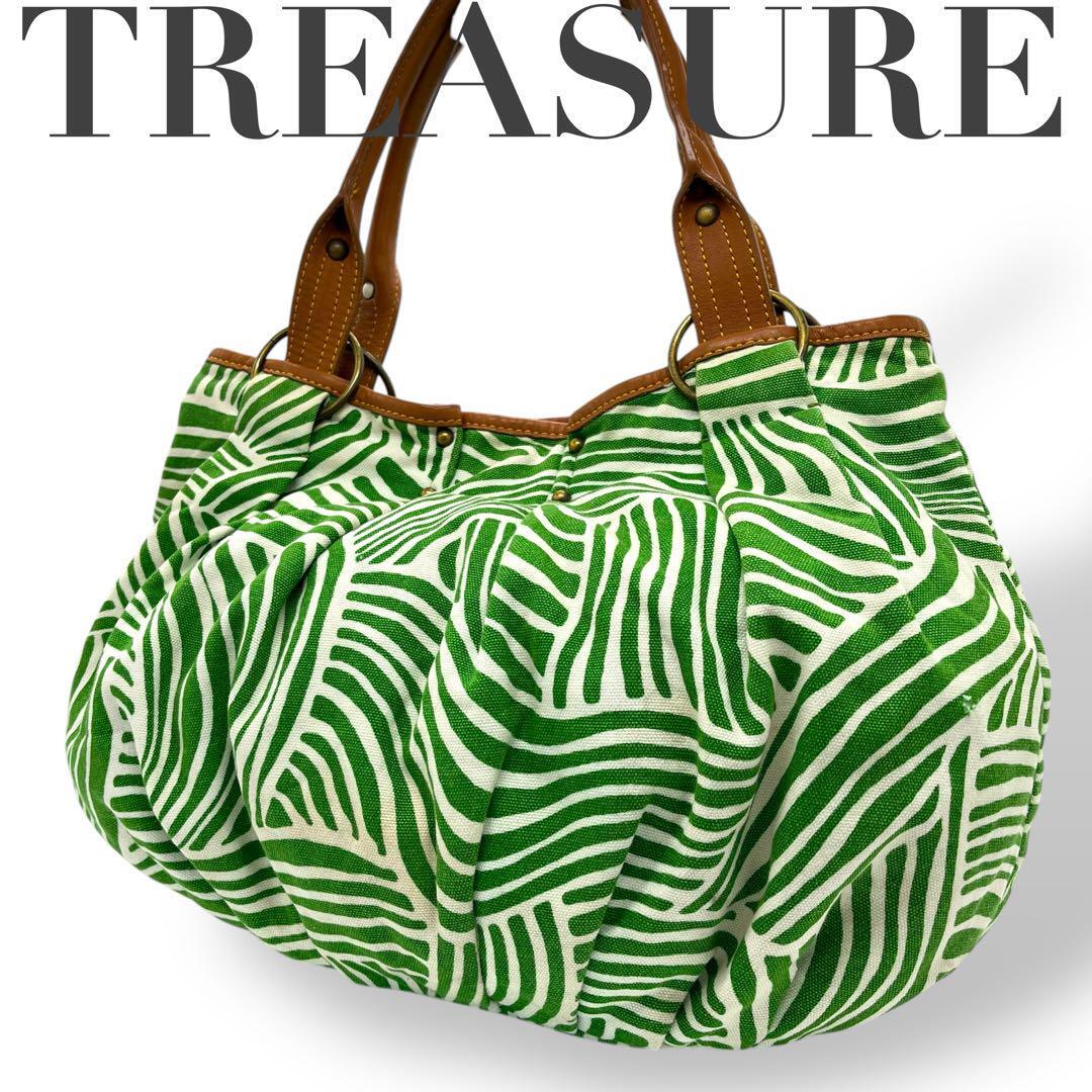 - 美品 TREASURE トレージャ ショルダーバッグ キャンバス レザー