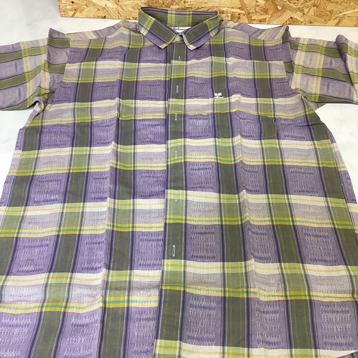 - Courreges Homme クレージュ 半袖シャツ チェック 紫 黄 Lサイズ た-66