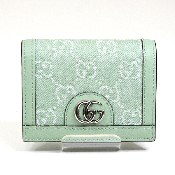 > グッチ GUCCI オフィディア GG カードケース ウォレット 523155 ペールグリーン 二つ折り財布【中古】Sランク