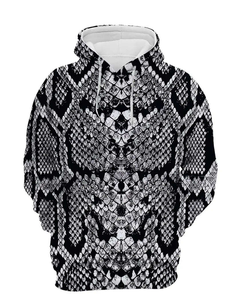 - ド派手 白蛇総柄 プリント パーカー 039 白黒 上着 ストリート HIPHOP B系 ヤクザ ヤンキー オラオラ系 ホスト 服 メンズ ファッション