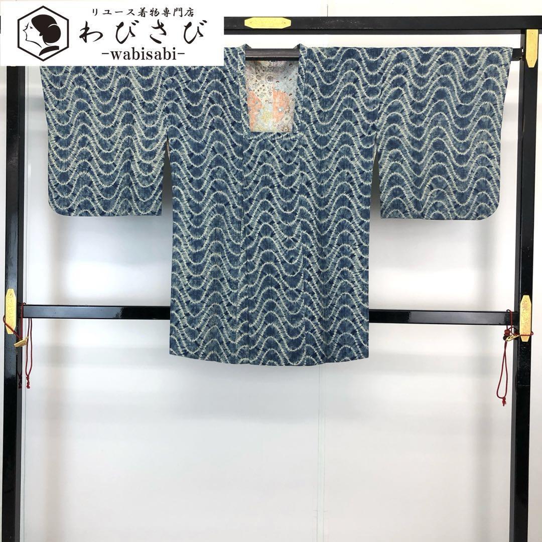 藍色の雰囲気の良いお色味に絞り柄の曲線模様の柄裄がデザインされた素敵なお品でございます。
