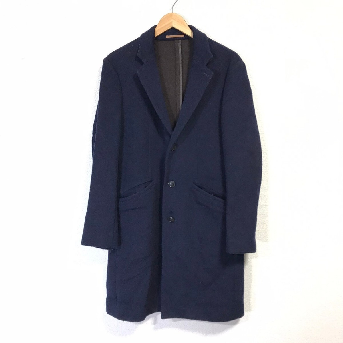 > h1480dL ABAHOUSE アバハウス サイズ46 (L位) チェスターコート ロングコート ネイビー 濃紺 メンズ 秋冬コート ウールコート きれいめ