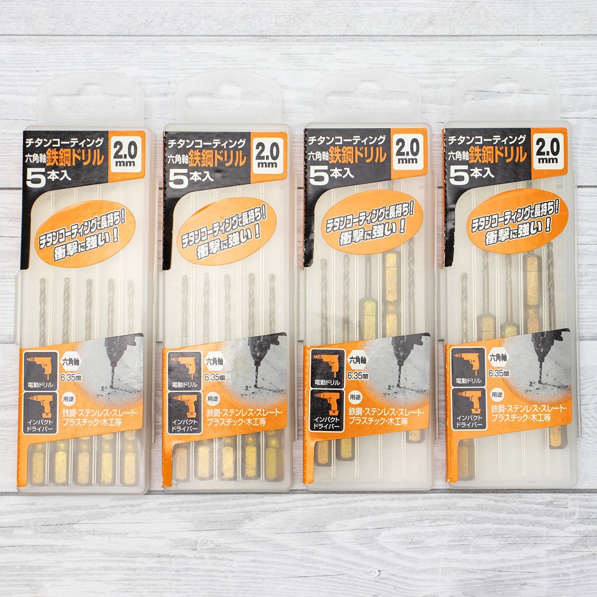 - 高芝ギムネ チタンコーティング 六角軸 鉄鋼ドリル 5本入 2.0mm No.2138-20 / 4個 未使用品 長期倉庫保管品 JAN:4989586133974
