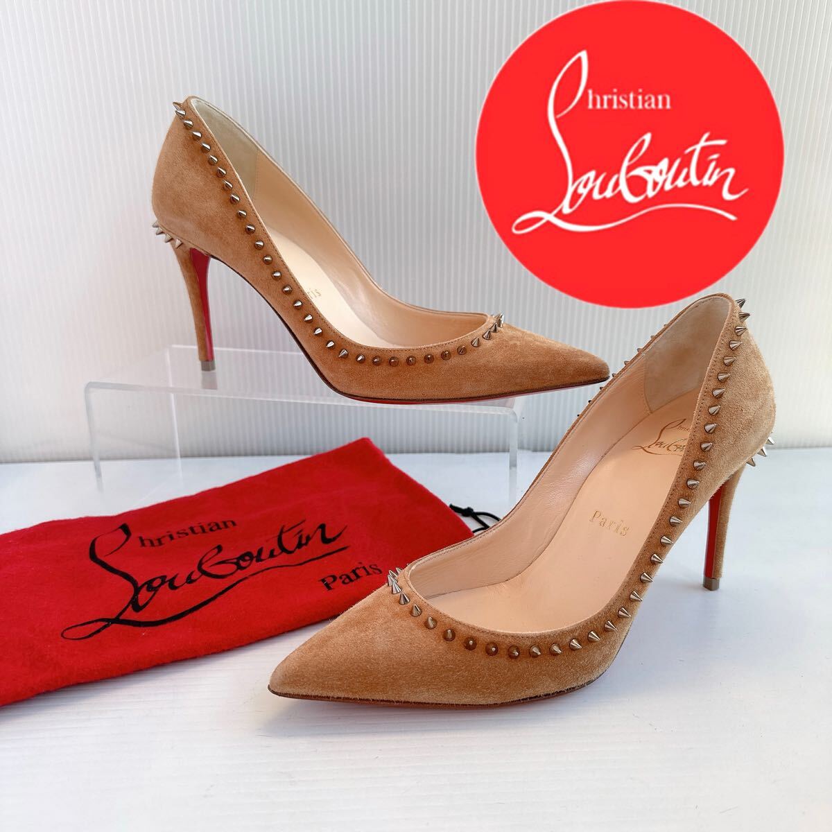 > Christian Louboutin クリスチャンルブタン スタッズ ハイヒール パンプス ポインテッドトゥ スエード 35 美品 靴 本革 レーディス