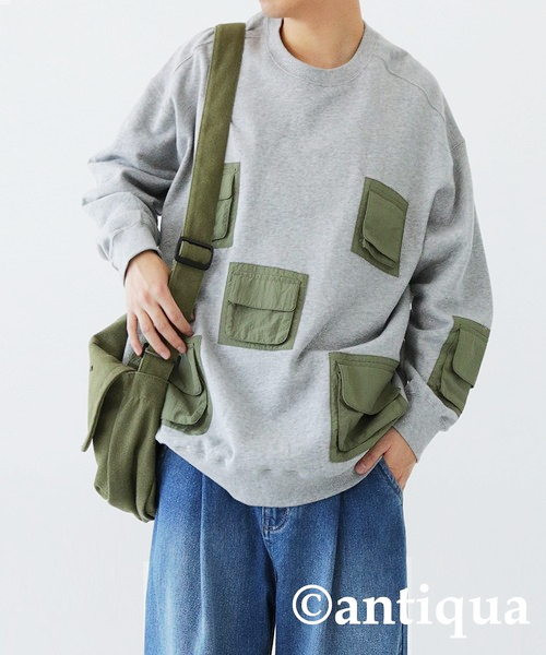 - ●美品 antiqua アンティカ TREE CAFE スウェットカットソー マルチポケット GRY サイズF