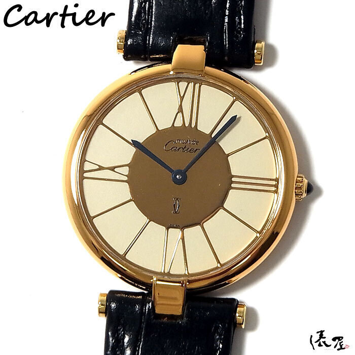 - 【カルティエ】マストヴァンドーム LM ゴールド4ローマ 極美品 ヴィンテージ メンズ レディース 時計 Cartier 俵屋