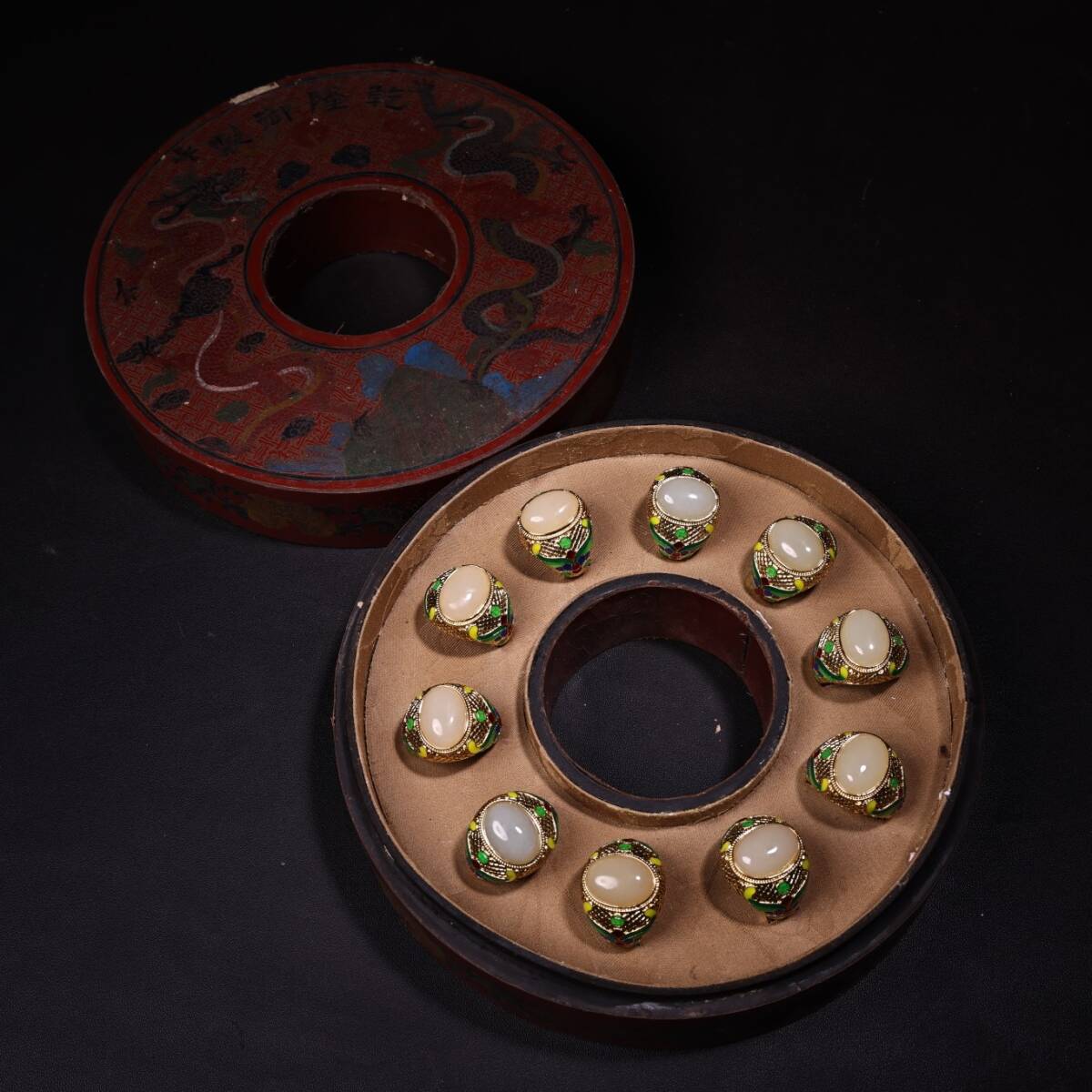 - 『清・宮廷御製・古景泰藍白玉雕・白玉戒指・指環・箱付』極細工・東洋彫刻・骨董品・古賞物・中国古玩・中国古美術