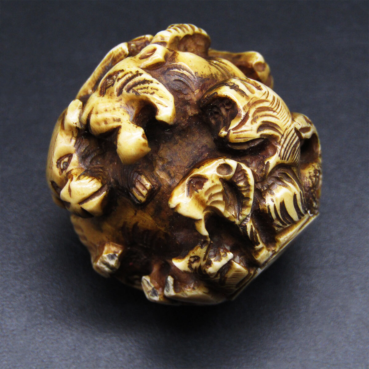 - 根付 動物 提げ物 提物 時代物 骨董 古美術 置物 古い 作家物 珍品 細密彫 縁起物 馬 猿 蛇 細工彫刻