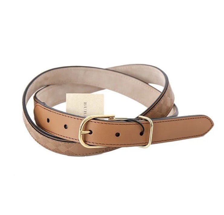 > ◎【新品】【アウトレット品】 BURBERRY LONDON バーバリーロンドン レディース チェック型押しレザーベルト [95] キャメル系 y-000294