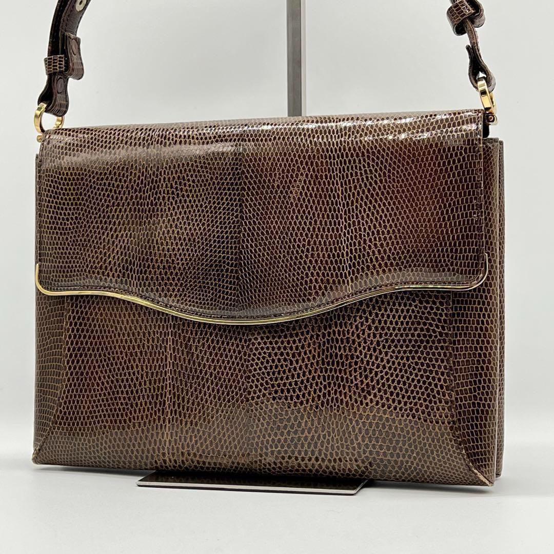 - 【美品】リザード lizard ハンドバッグ ブラウン エキゾチック ビンテージ フォーマル レディース メンズ 通勤 通学 JA710118B