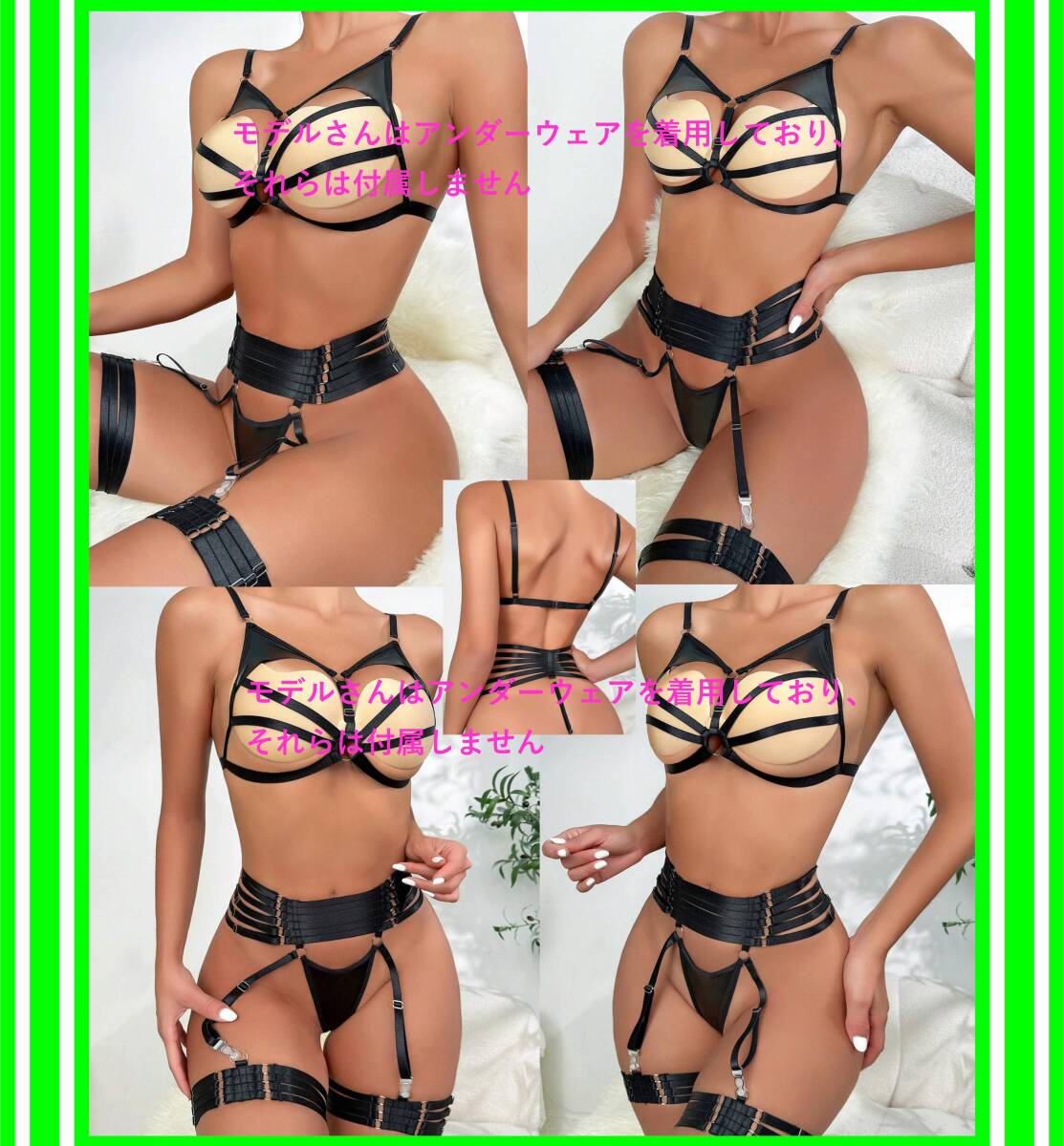 > ★超素敵★フェイクレザー&ハーネス★カットアウト★ガーターデザイン★コスチュームランジェリーセット★キュート★レッグリング付★B157