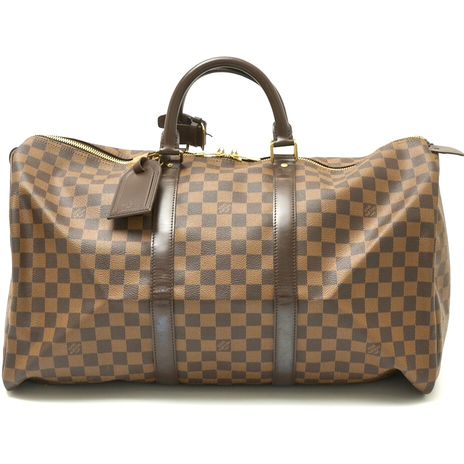 > LOUIS VUITTON ルイヴィトン キーポル 50 N41427 ボストン ハンドバッグ ダミエ・エベヌ×レザー ブラウン×ゴールド メンズ レディース