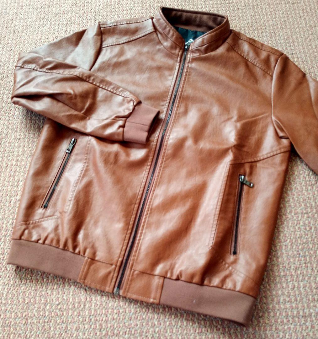 - 【新品/送料込】★PUレザー合皮 L.BROWN ライダースジャケット★