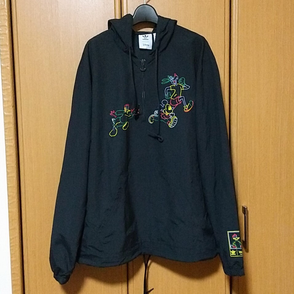 - adidas DISNEY アディダス ディズニー コラボ ハーフジップ ナイロン パーカー ミッキー ドナルド グーフィー ジャケット 黒 ブラック L