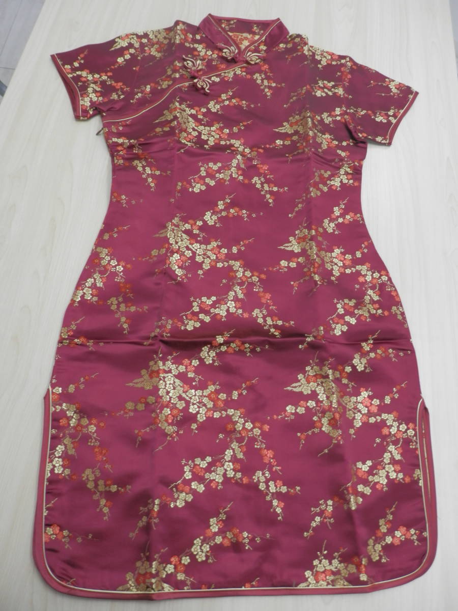 - チャイナドレス ショート丈 梅柄 ワインレッド スリット ワンピース コスプレ【C914】