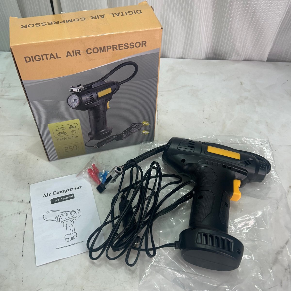 > &M& 【動作確認済み】 エアコンプレッサー DIGITAL AIR COMPRESSOR 自動車 自転車 空気入れ 新品同様 中古品 &H-250142