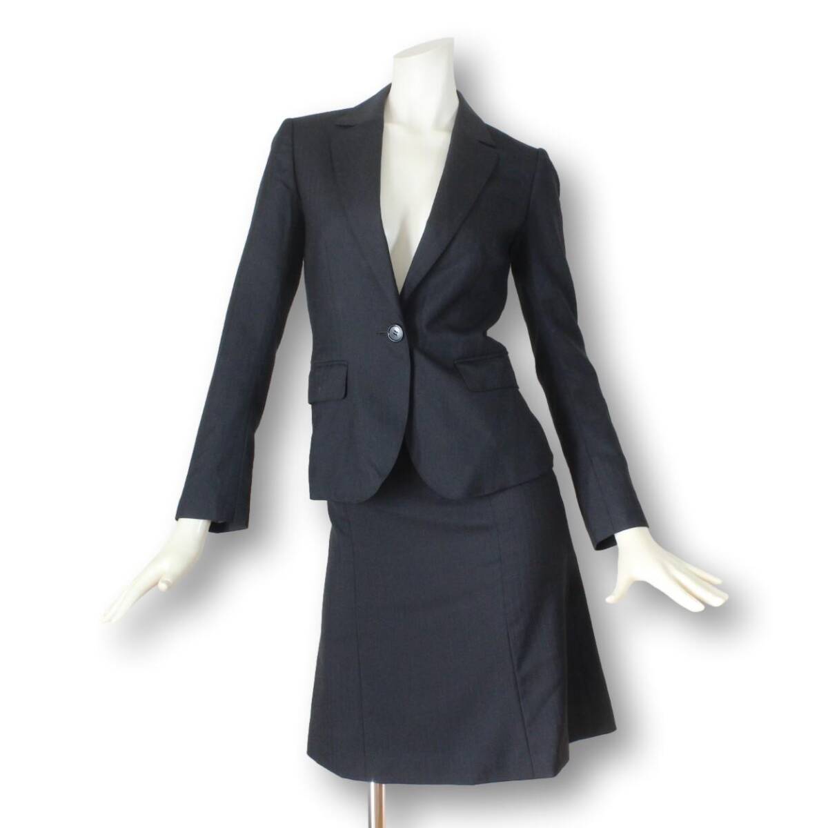 > 20【極美品】ザ スーツカンパニー シー スカートスーツ 34 ブラック 黒 SS ★未使用に近い★ tqe 4 seasons wearable オールシーズン
