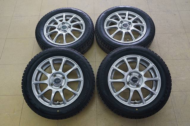 > 【バリ山 中古 SET】155/65R14 ブリジストン ブリザック VRX2 23年 ECOFORME 4H100 14 4.5J+45 N-BOX タント スペーシア キャンバス