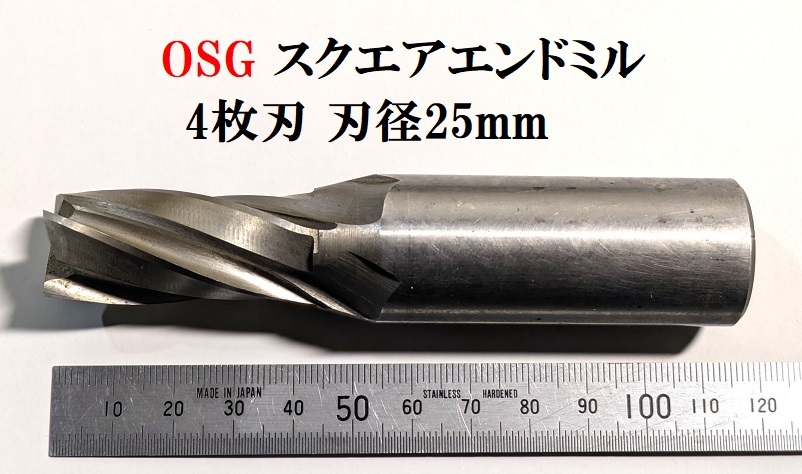 - K20★OSG 4刃 ハイススクエアエンドミル センタカット 刃径25mm シャンク径Φ25mm HSS-Co★状態良★