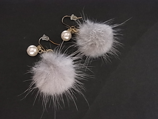 > グレートーンのファーが可愛い プラスチックパールとクリアジルコンも1粒ずつ揺れる 大人ガーリーな印象感 シックな色味素敵なピアス★