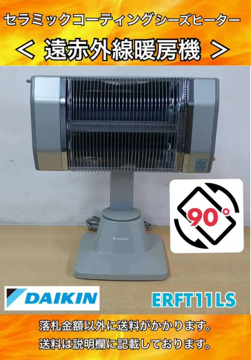- 美品 DAIKIN ダイキン 遠赤外線暖房機 セラムヒート ERFT11LS ウォームシルバー 1000W チルト・自動首振・ピボット機能 中古動作品