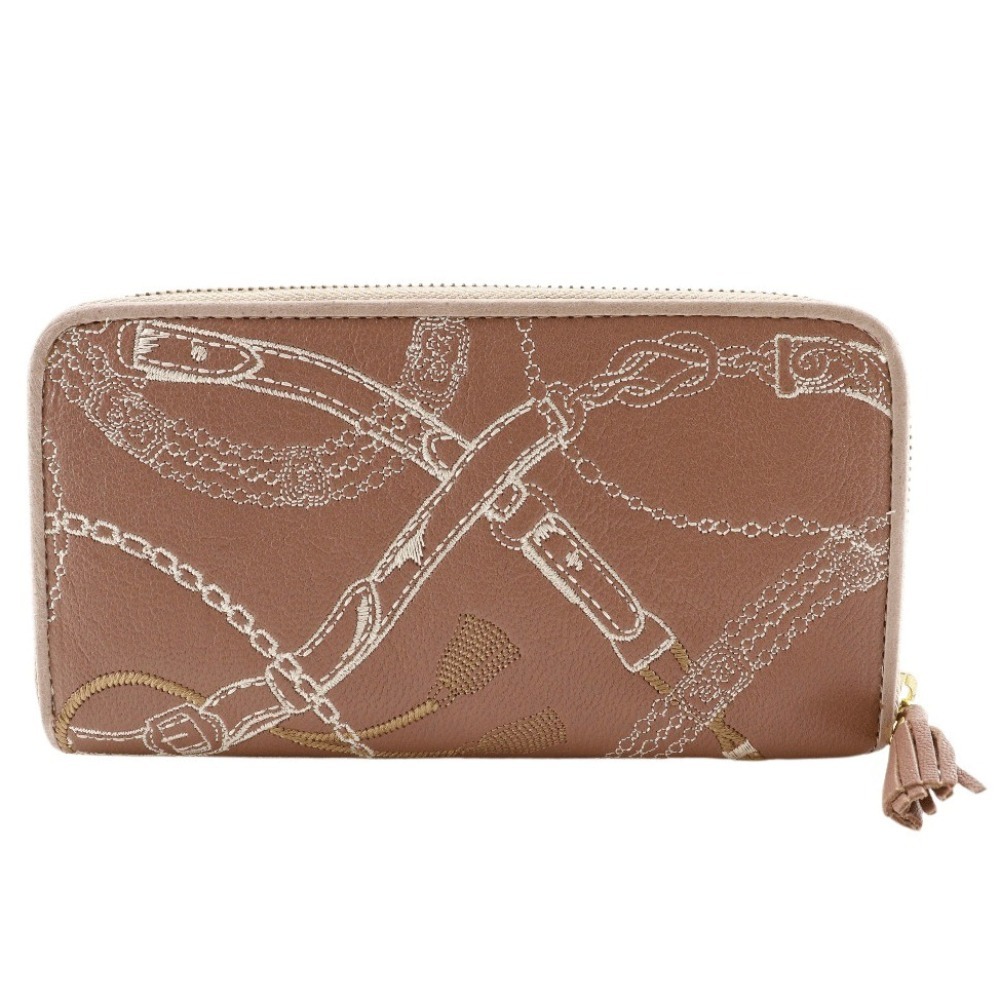 > Endymion Spring エンディミオン・スプリング 本革刺繍 ラウンドファスナー 長財布 薄ピンク レディース【Y192724083】中古