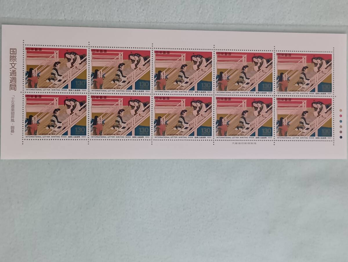 国際文通週間 士女遊楽図屏風・囲碁 1994 切手シート1枚
