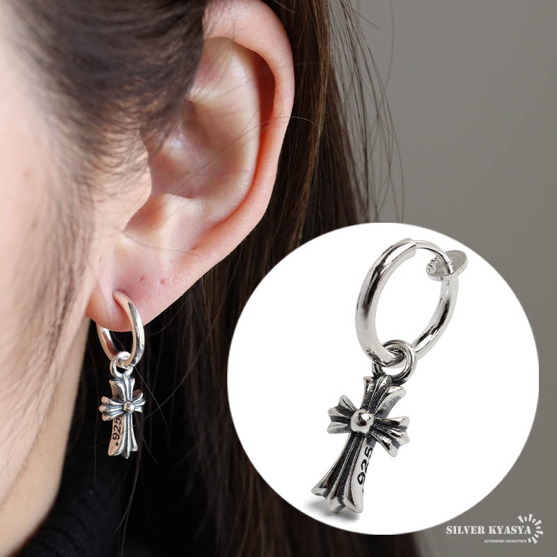 > シルバー925 フープイヤリング クロスイヤリング ノンホール 穴不要 シルバー フェイクピアス 片耳1点 金アレ対応