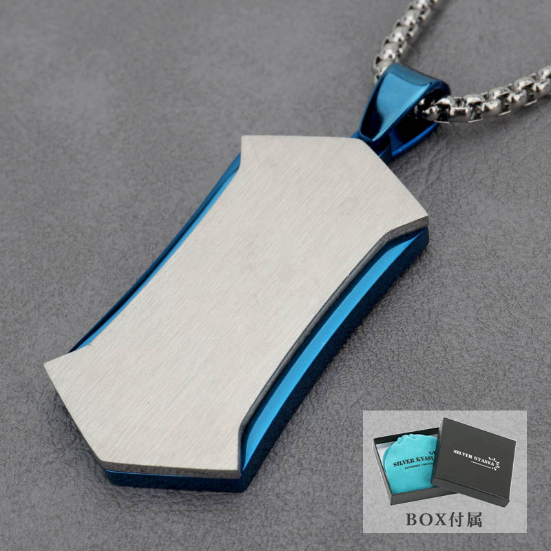 - 機械美 存在感 ドッグタグネックレス マットシルバー ブルー メンズネックレス プレートネックレス チェーン付き 専用BOX付属