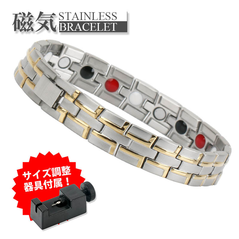 - ステンレス 磁気ブレスレット シルバー ゴールドブレスレット 長さ調整道具付属