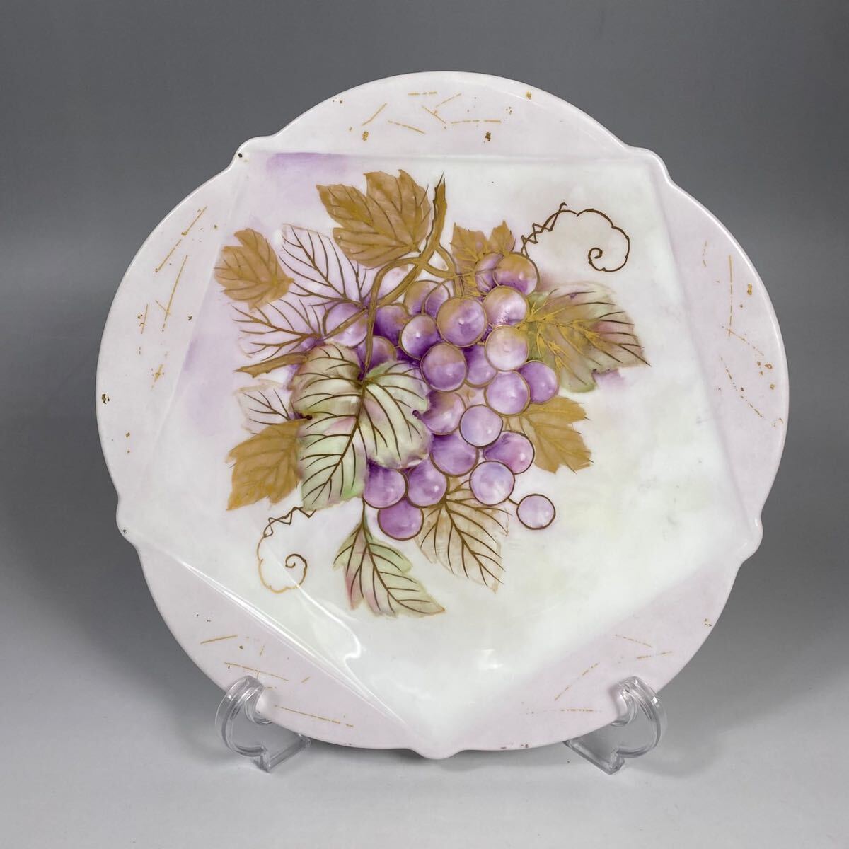 > 金彩 飾り皿 絵皿 葡萄紋 飾り皿 皿ハンドペイント 美術品 23cm 金彩 ペインター作品 オールドニッポン調 美術品 飾皿 プレート