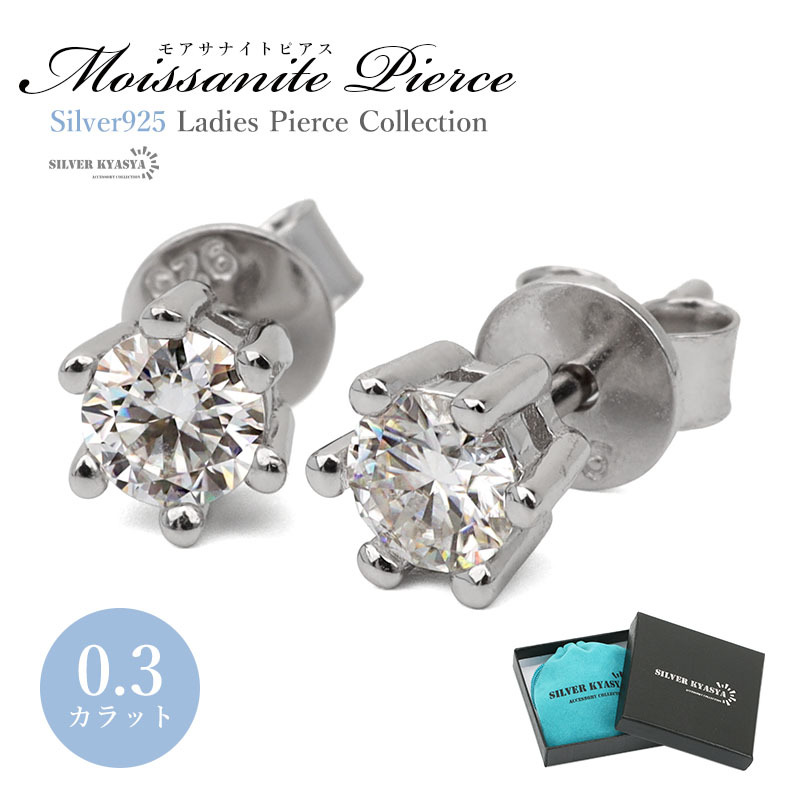 - モアサナイト ピアス シルバー925 スタッドピアス シルバーピアス 一粒 0.3カラット 両耳用 金属アレルギー 専用BOX付属