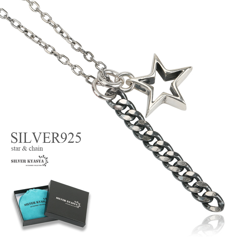 > シルバー925 スター ペンダント ネックレス 星 喜平チェーン 燻加工 アレルギー対応 ボックス付属 あずきチェーン 40cm