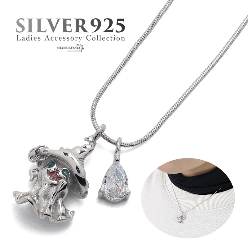 - ネックレス お化け チェーンネックレス シルバー925 CZ ジルコニア スネークチェーン ゴースト ハロウィン シルバー