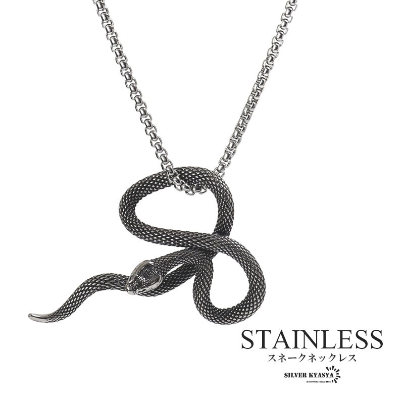 - ステンレス スネークネックレス メンズ シルバー 蛇 ペンダント ベネチアンチェーン 付き