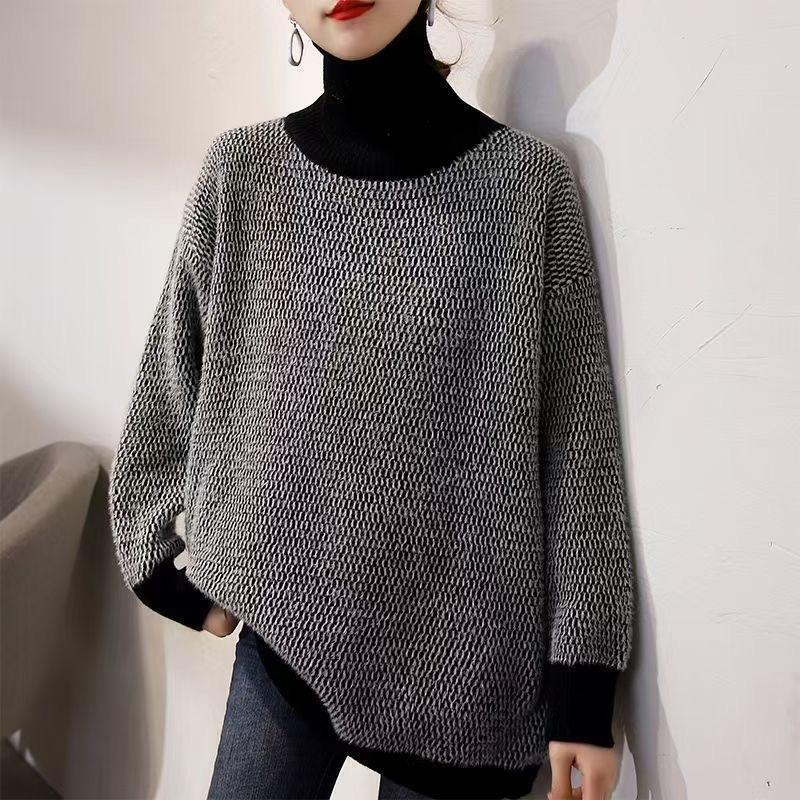 - 【ブラック色★XLサイズ】長袖ニットセーター秋冬大きいサイズ